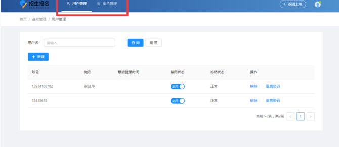 1、可以对用户的角色进行分配,支持账号信息的添加,支持角色账号绑定。