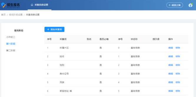 1、报名支持分阶段进行,支持每个阶段设置不同的采集信息。